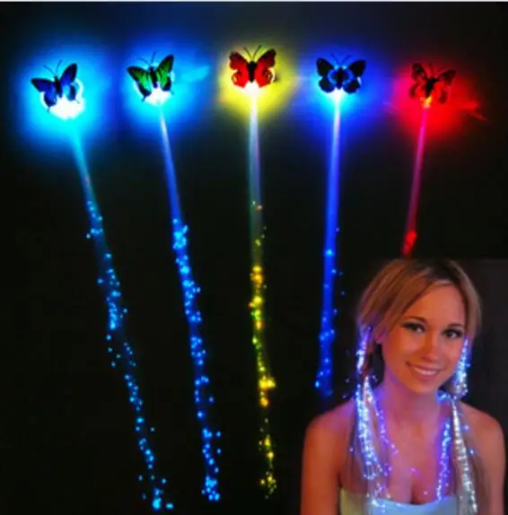 .Gallery for LED Toy Colorful Butterfly Hair Girl Toys LED Light-emitting Fiber Optic Pigtail Wig Braids Led Braids YH962